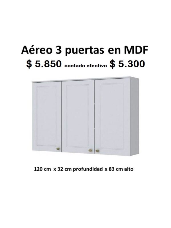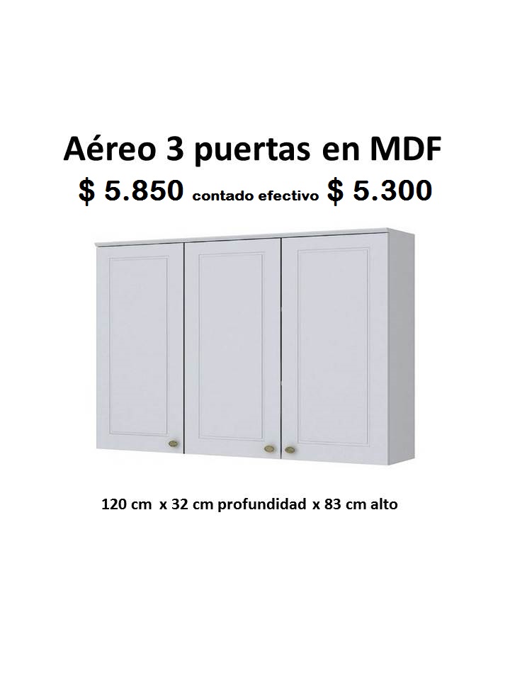 Aéreo 100% en MDF, bisagras de 35 MM con cierre slow motion y tiradores en Zamac.