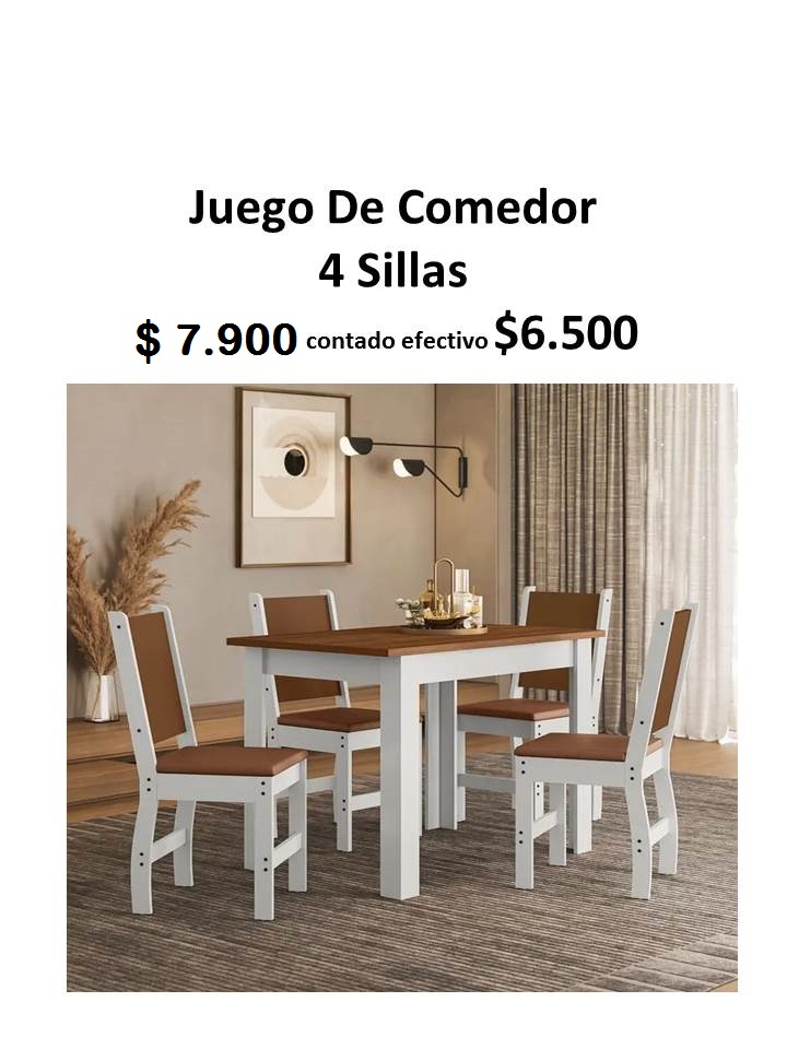 juego de comedor 4 sillas en MDF silla tapizada en PU