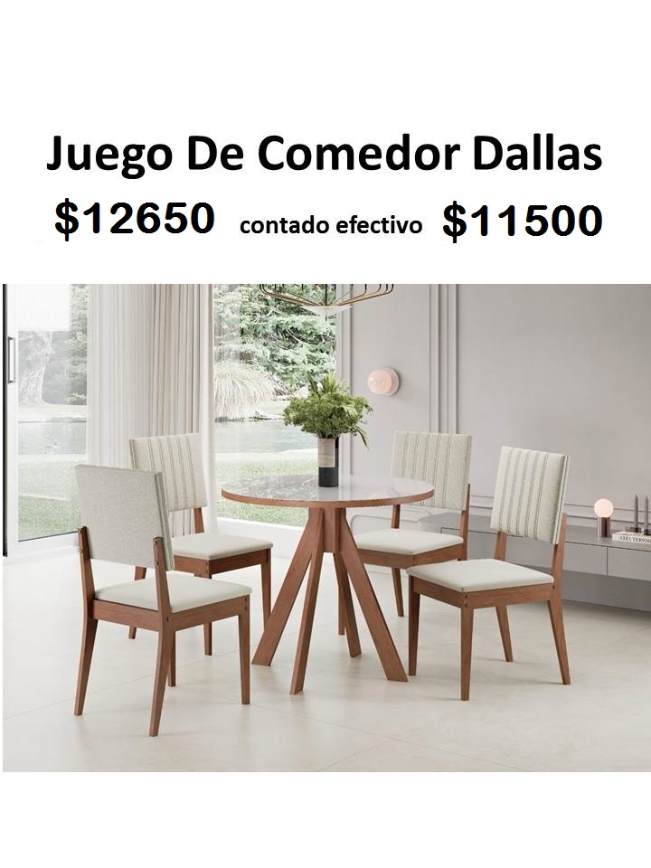 juego de comedor en madera y tapa en MDP + 4 sillas tapizada