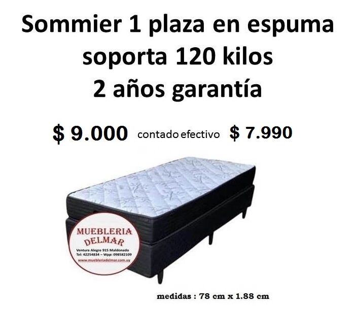 sommier 1 plaza en espuma alta densidad ,soporta 12o kilos ,2 años de garantia