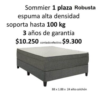 sommier Robusta 1 plaza espuma alta densidad con pilow