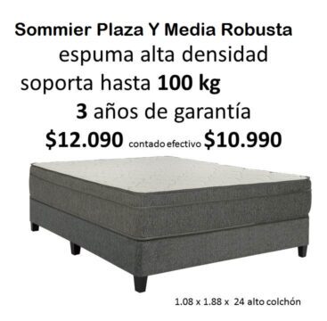 sommier Robusta 1 plaza y media espuma alta densidad con pilow